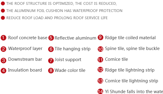 As the optimization of the traditional roof ventilation scheme, the addition of aluminum foil cushion forms an air layer between the reflective aluminum foil and the thermal insulation board embedded between the downstream strips, replacing part of the thickness of the thermal insulation board, and the thermal insulation protection layer is omitted
