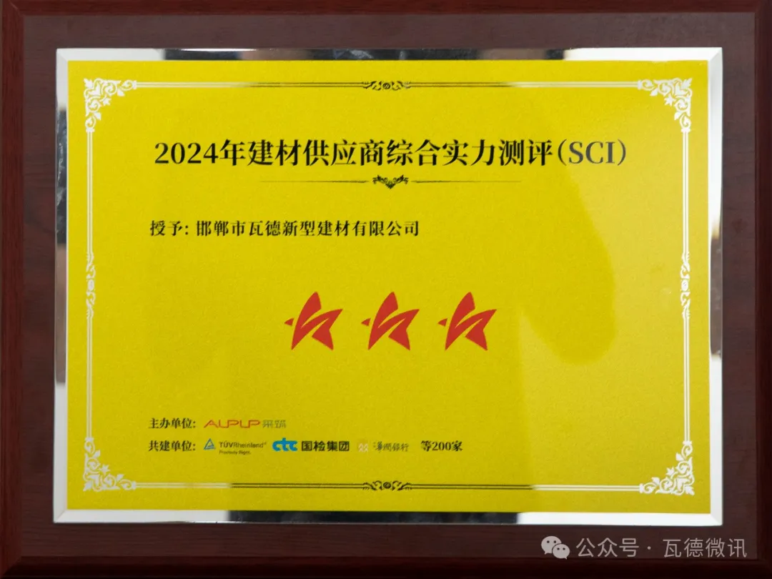 2024年4月8日,“5光同行 聚星閃爍”采筑聯(lián)合者大會(huì)在重慶順利召開,現(xiàn)場(chǎng)重磅發(fā)布2024年供應(yīng)商綜合指數(shù)SCI測(cè)評(píng)結(jié)果,獲全場(chǎng)數(shù)百位政府單位、采購(gòu)商、供應(yīng)商、行業(yè)協(xié)會(huì)、領(lǐng)域?qū)<业赛c(diǎn)贊認(rèn)可。 瓦德新材在本次SCI綜合測(cè)評(píng)中獲評(píng)“三星供應(yīng)商”。本次SCI測(cè)評(píng)共有2600余家參評(píng)單位,其中僅197家